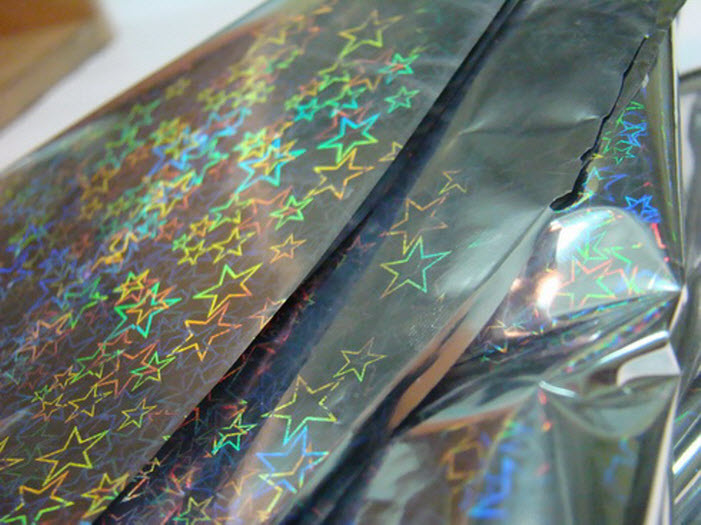 When presenting a souvenir in a festive atmosphere, its equipment should correspond to the event. In this case, a film with holography will perfectly fit. This new type of film has all sorts of colors. This package is noticeable and shiny. Her shortcomings: a little flexibility, difficult to give a beautiful shape to the present. Wrapping a simple, ordinary box with such a film, you will get a sparkling, chic souvenir.