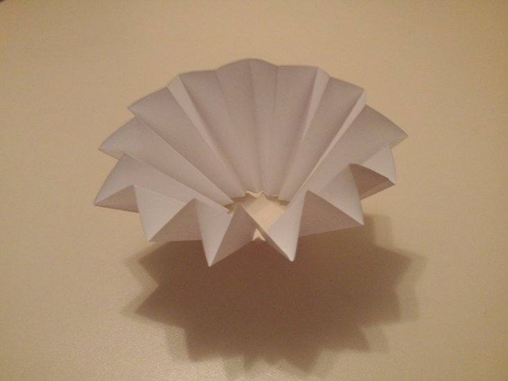 - Make a white stand out of white paper. You can perform it in a corrugated form, you should get something like a round fan. Form a basket-shaped stand.