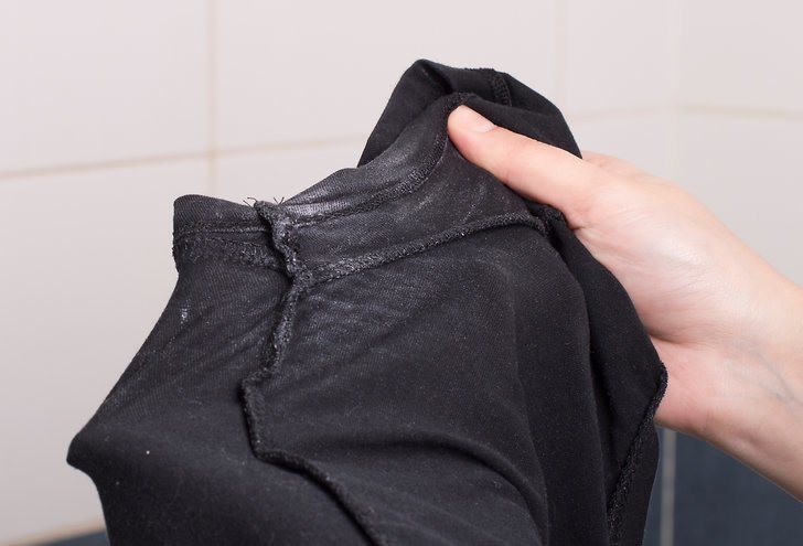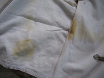 On the fabrics of black and dark shade most often appears gloss - shiny traces of hot iron on the surface of the material. On lighter linen, tanning marks are formed, they have a yellowish color and less often brown.