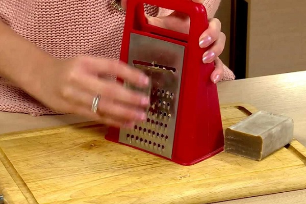 Laundry soap can also help in the fight with an ugly shine on black things. In this case, it is rubbed on a coarse grater, some ordinary water is added and dissolved, then it is used in the same way as in the case described above — a piece of gauze is soaked in solution and stroked through the damaged item.