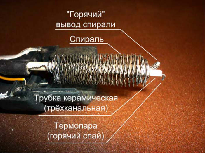 A special nichrome spiral, equipped with additional ceramic rings, heats the sole. To adjust the heating temperature, a special thermostat is installed. It turns off the power supply, performing the specified mode.