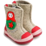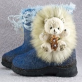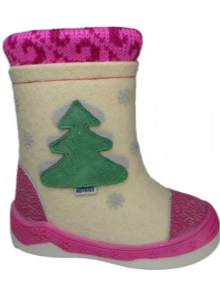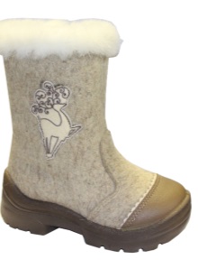 In our country there are also many different enterprises specializing in the production of felt boots, in particular, children's models. Thus, the Thomas brand (Magnitogorsk) produces models in the traditional Russian style - the top is made of natural felt, and the lining is made of Orenburg wool. Children's boots are presented in a wide model range and have an attractive design. Rubber outsole, as guaranteed by the manufacturer, will not slip and freeze.