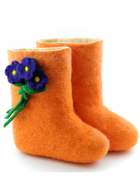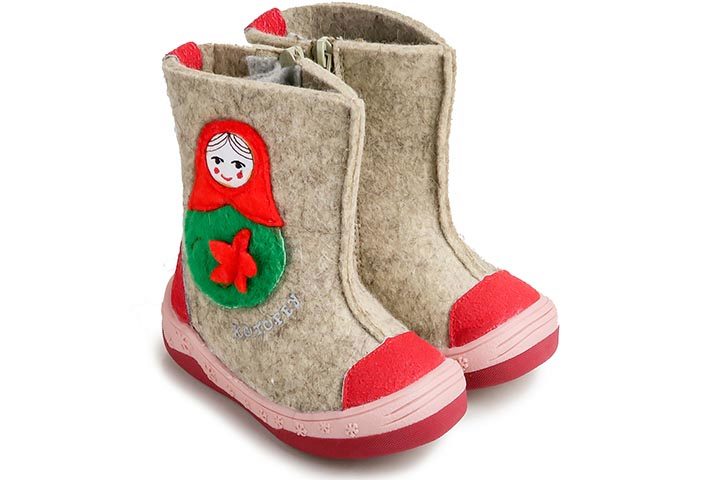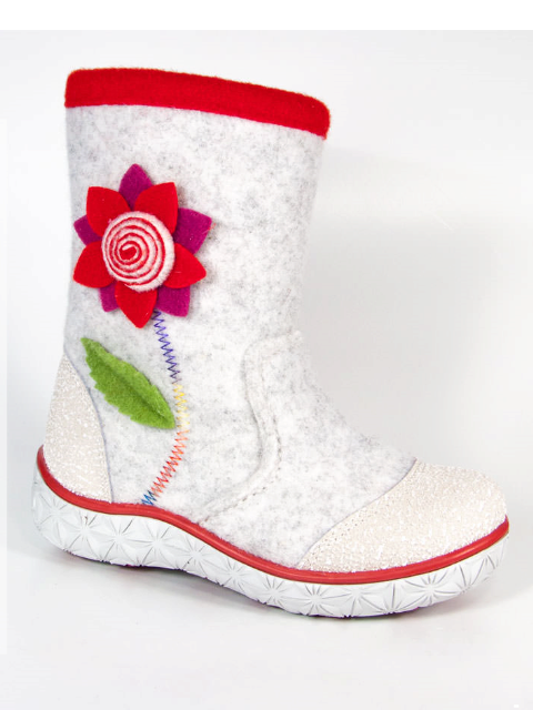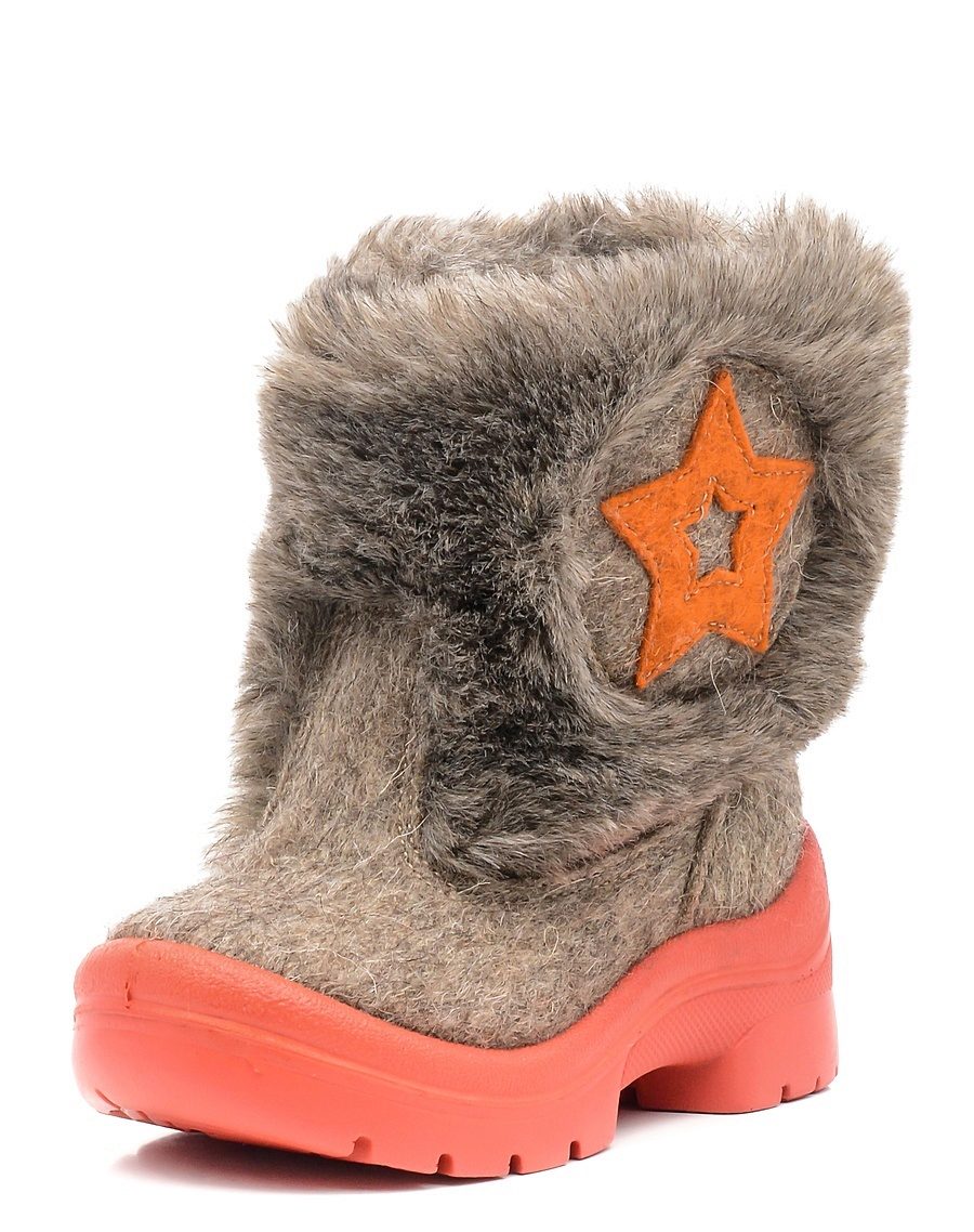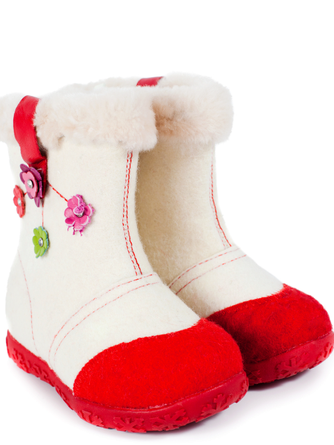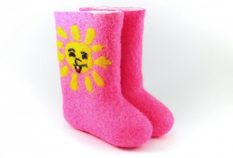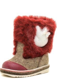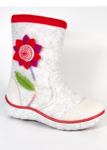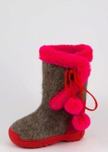 The color scheme of children's boots is very diverse. In addition to the standard gray, white and black tones, bright colored felt boots (red, orange, pink, blue) are popular.