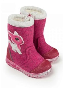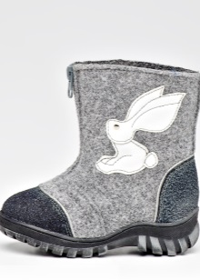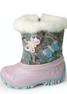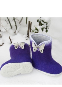 Most models of children's boots are equipped with waterproof soles, often it has a tread that gives stability to the sliding ice surface. On the knocked down products from the top you can wear galoshes. In rubberized felt boots or variants with galoshes, a child can walk on wet snow.