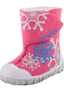 Children's felt boots of the Finnish brand Kuoma are very popular with the Russian consumer. They differ from traditional Russian models by a number of indicators: this is lighter weight (due to the textile upper), internal insulation with artificial fur, water and dirt repellent impregnation. In addition, the bottom of the boots protects the rubber edging, poured together with the sole, for this reason they are more durable.