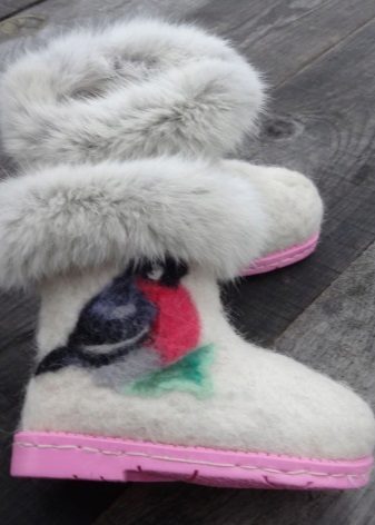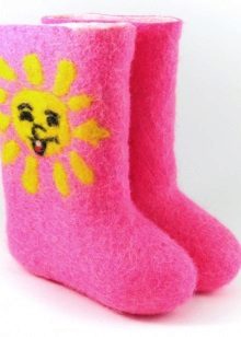 Today, such a model as homemade children's valenki is also being produced. They are lightweight and have a shorter length than street options. Girls can choose similar shoes for home, decorated with lace or voluminous appliqué.