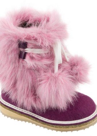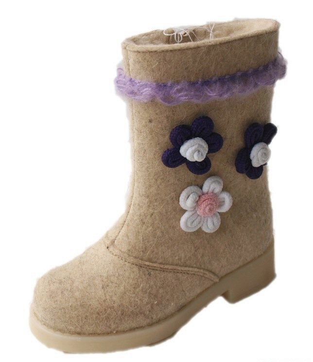 The boots have a number of advantages compared with other types of children's winter shoes. Due to its porous structure, sheep wool is unusually warm and able to warm even in severe frost. In addition, this material perfectly evaporates moisture: if the child’s leg is sweating, the sweat will not remain inside the shoe, but will be brought out, leaving the boots themselves dry. For children, this is very important, as they often freeze not from cold outside, but from cold sweat.