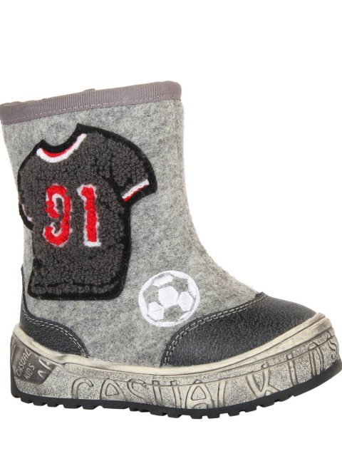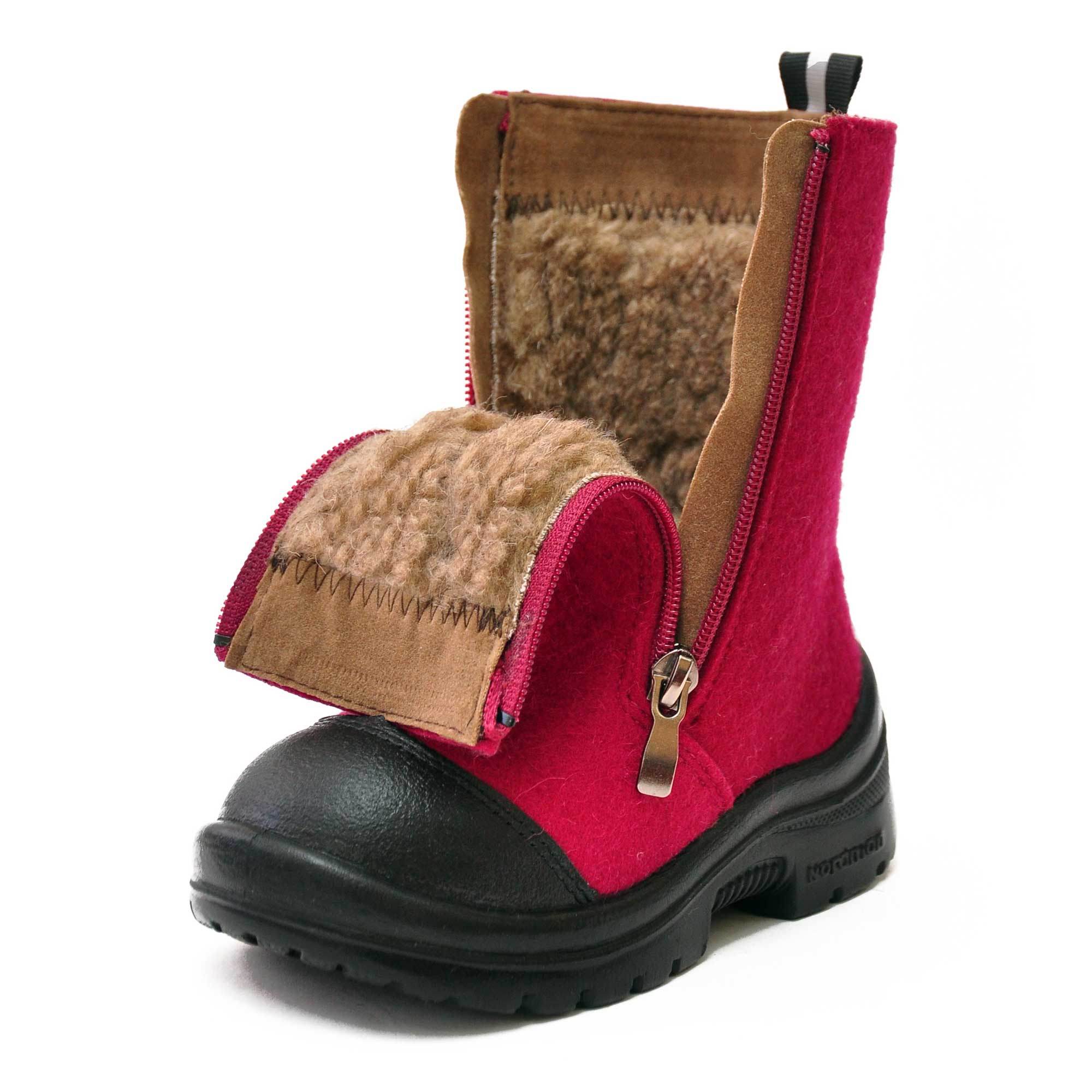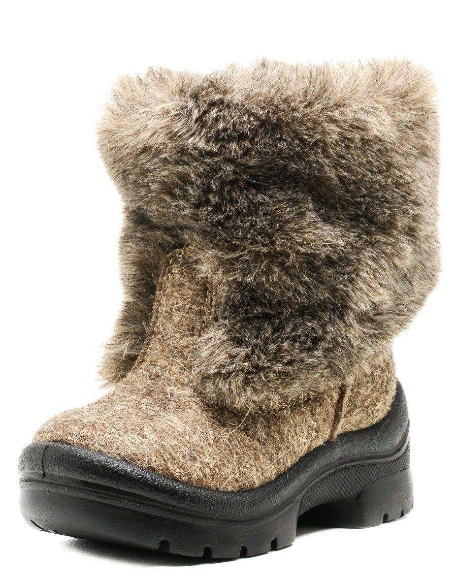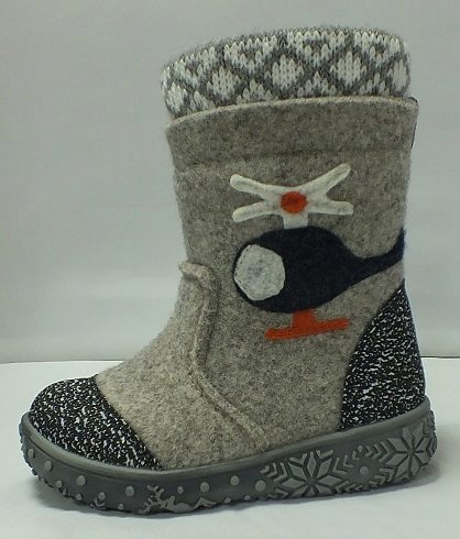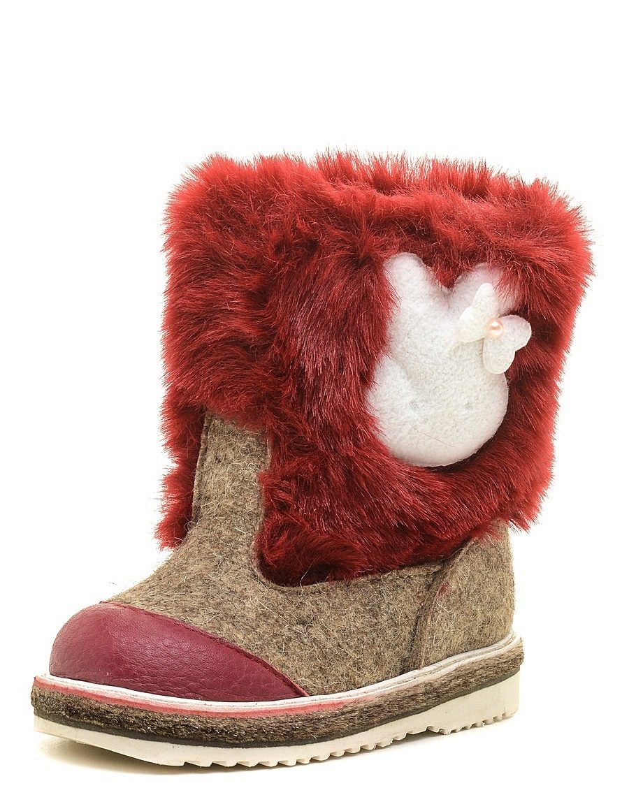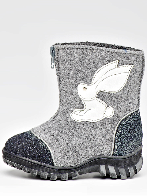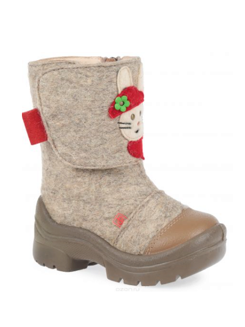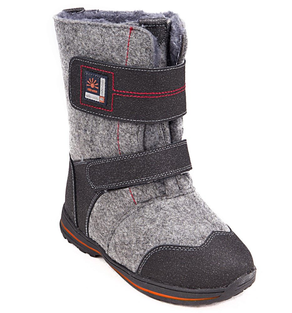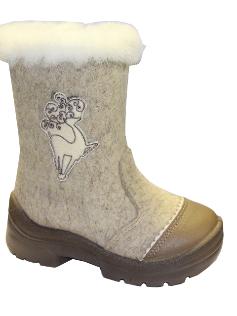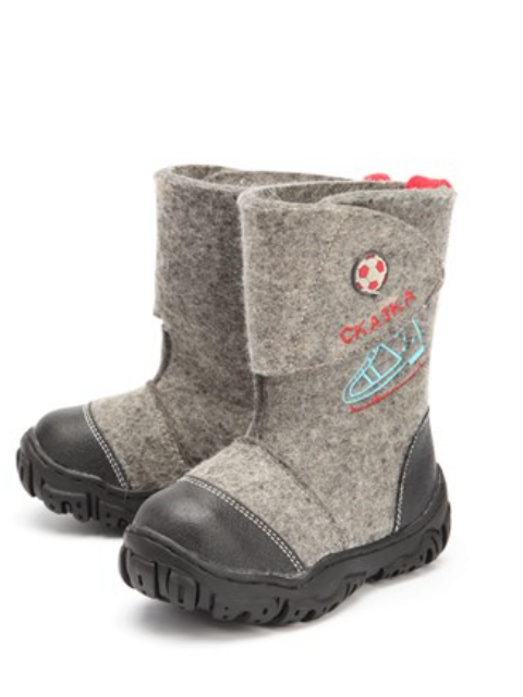 The buckle of the felt boot is extremely simple - even a kid can handle it. Inside, the boots are equipped with a fur lining, which will provide a child with comfort in the bitter cold. The boots themselves are made of Italian felt (0.6 cm thick). Polyurethane outsole has an anti-slip notch.