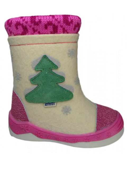 The Kotofey brand produces natural eco-friendly shoes. On the basis of classic boots, the designers have created practical shoes with clasps (Velcro, zippers, shoelaces), insulated lining, which prevents the ingress of snow. The rubber sole is designed to cover the felt upper in the form of a peculiar galosh with an over-heel protection. There are models of boots, in which the toe and the heel are rubberized - they can walk on wet snow. For extremely cold weather, Kotofey offers options with fur inserts. For legs with a high rise, you can pick up felt boots with velcro and with a wide plug-in part, allowing you to conveniently fix shoes.