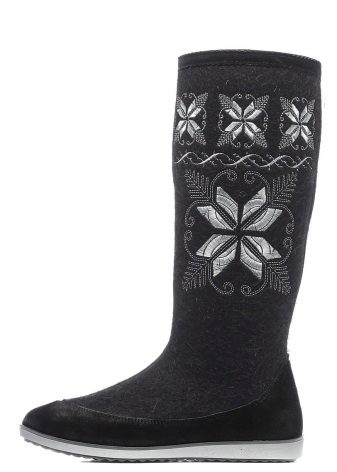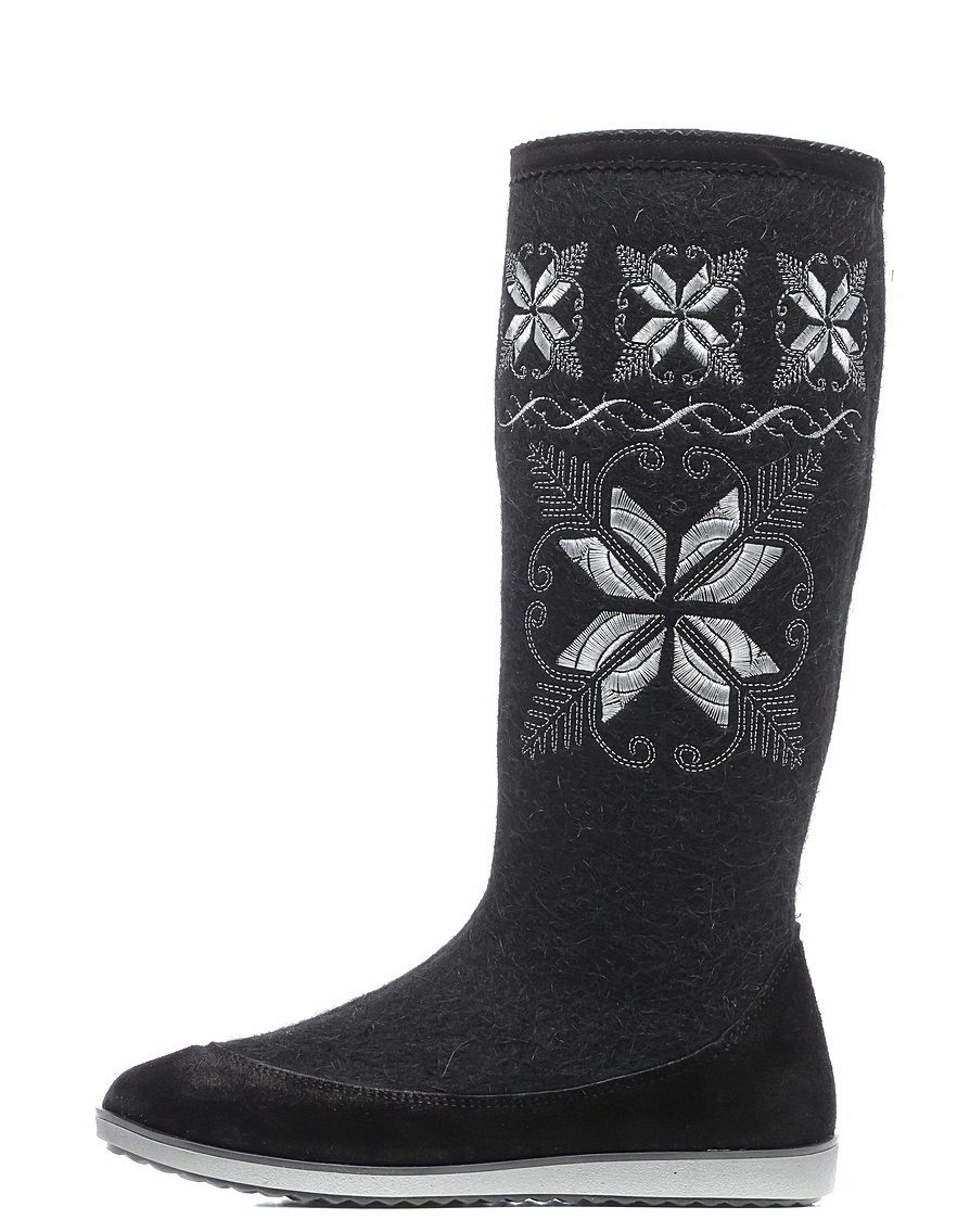 The range of Kukmorian boots includes men's, women's and children's options. Male models, as a rule, are black in color, have minimal decor (an inscription or a geometric pattern).