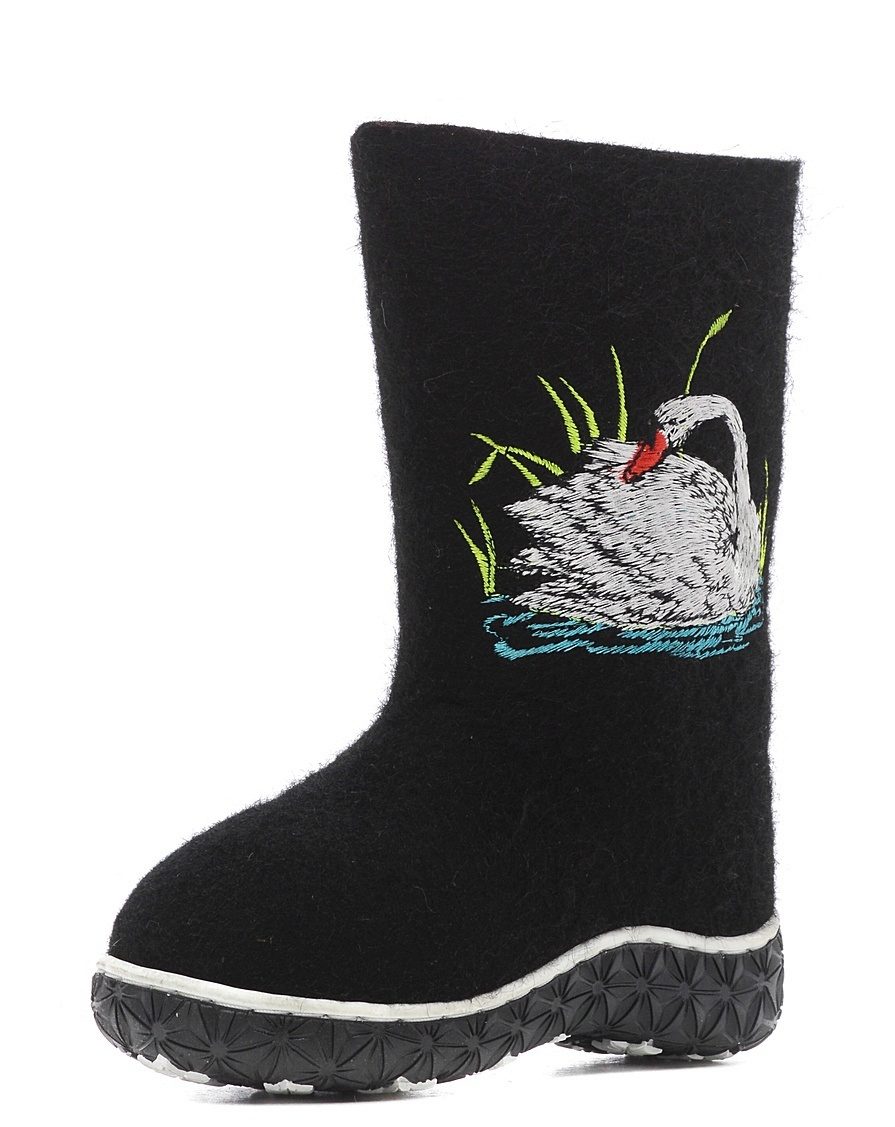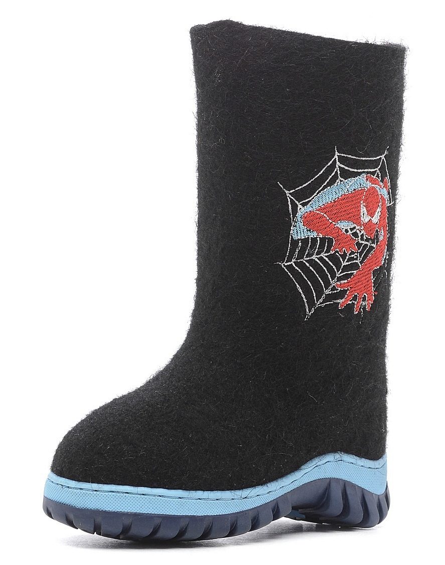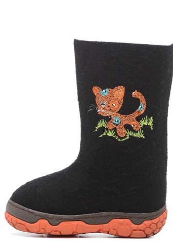 A significant niche in the assortment of shoes of the Kukmor combine is occupied by the children's line (by the way, in addition to felt boots, it is also felt boots, shoes, slippers, and even booties). Valenki for boys, as well as for men, mostly black color. Models for girls are often white or pink, with elegant furry. Children's options are different colorful and diverse embroidery: horses, Christmas trees, hearts, cars, on felt boots you can even see Santa Claus and Spiderman.
