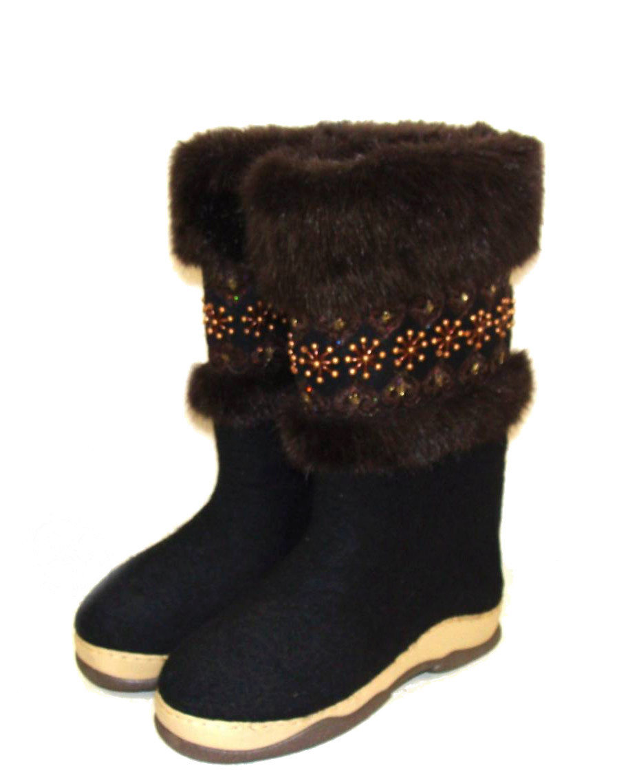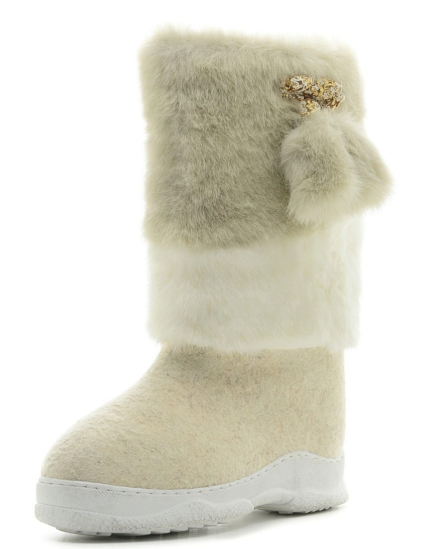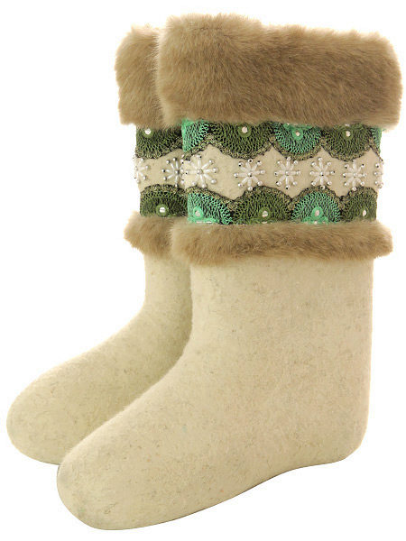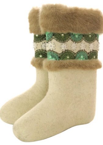 Women's felt boots are more elegant, presented in rich colors (besides the traditional colors there are blue, blue, coral). The snow-white models decorated with fur of the same color look cute. Valenki with a full fur bootleg look rich.