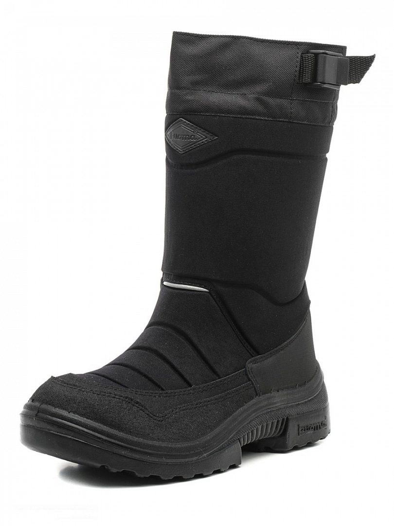 Kuoma boots have a high-strength textile tops, impregnated with water and dirt-repellent composition. The sock of the shoe is reinforced with a durable insert made of genuine leather. The side parts have an inner layer of thin plastic, the purpose of which is to keep warm. Due to the closed-cell design, plastic does not absorb moisture. And even if you came in a snowdrift, the boots would dry out in just a few minutes. However, if you stay in the water for a long time, your shoes will get wet, since the moisture resistance of these boots is focused only on wet snow.