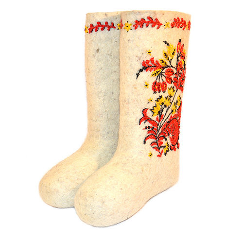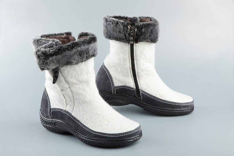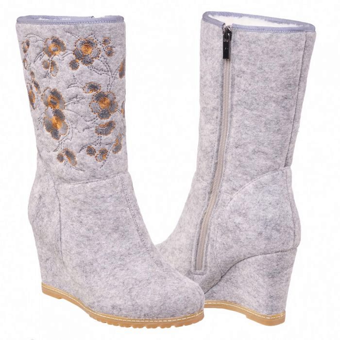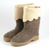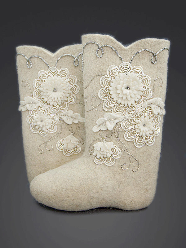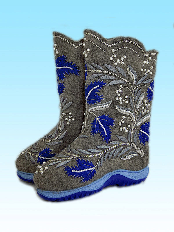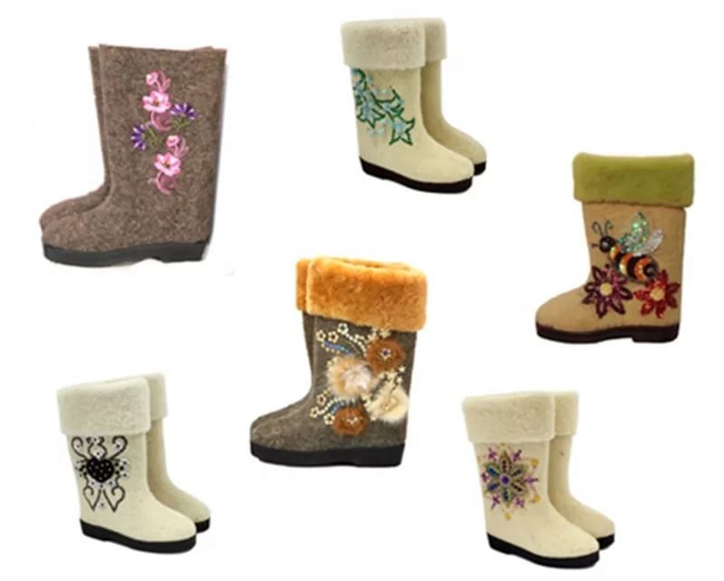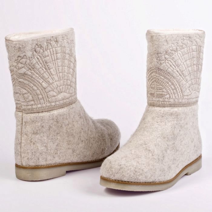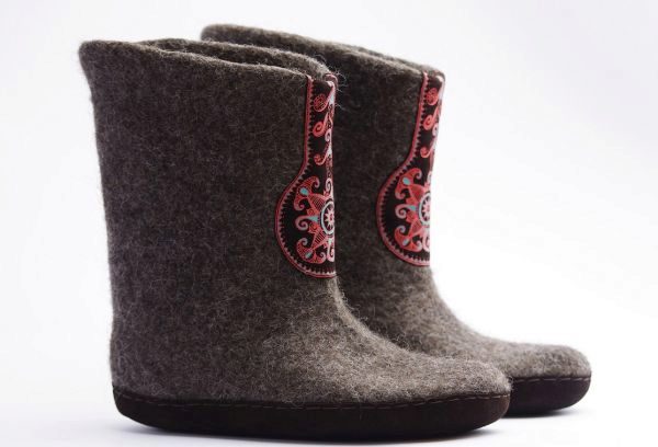 Initially, the boots were made entirely by hand from sheep wool, with the white versions from the Mongolian breed, the gray ones from the Caucasian and Central Asian sheep. However, there were separate samples from the wool of goats and dogs.