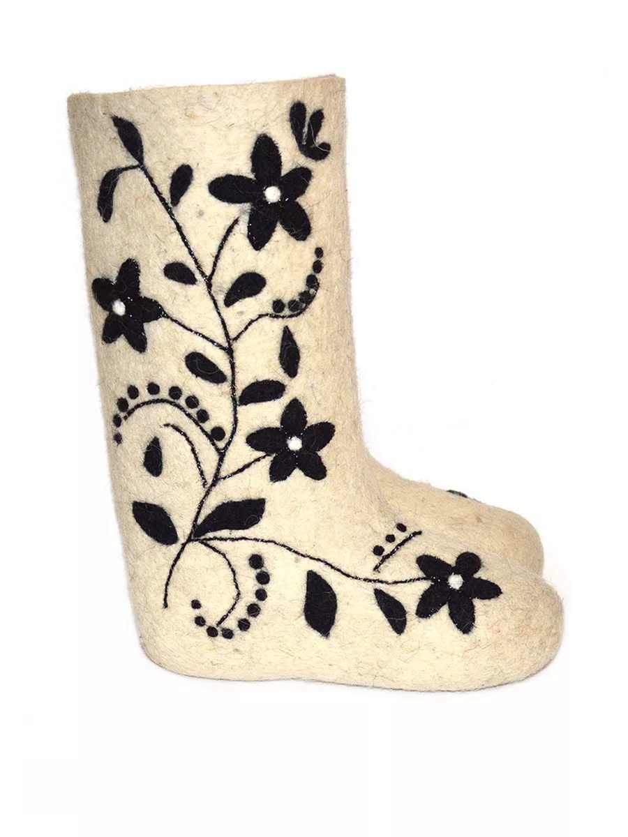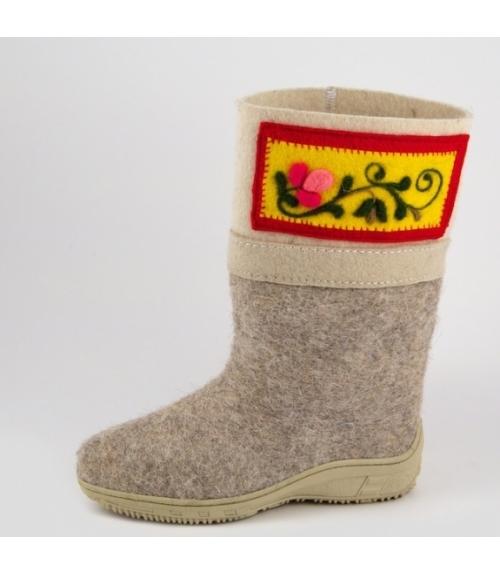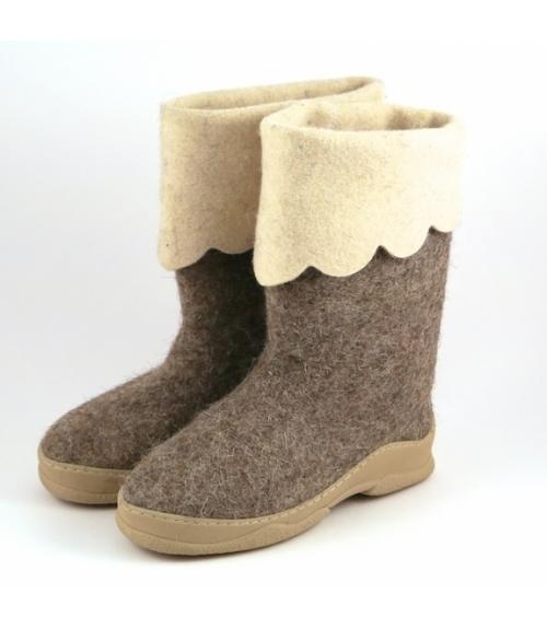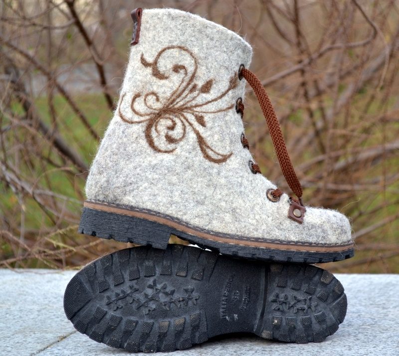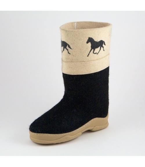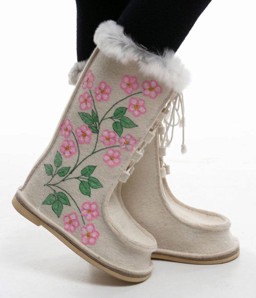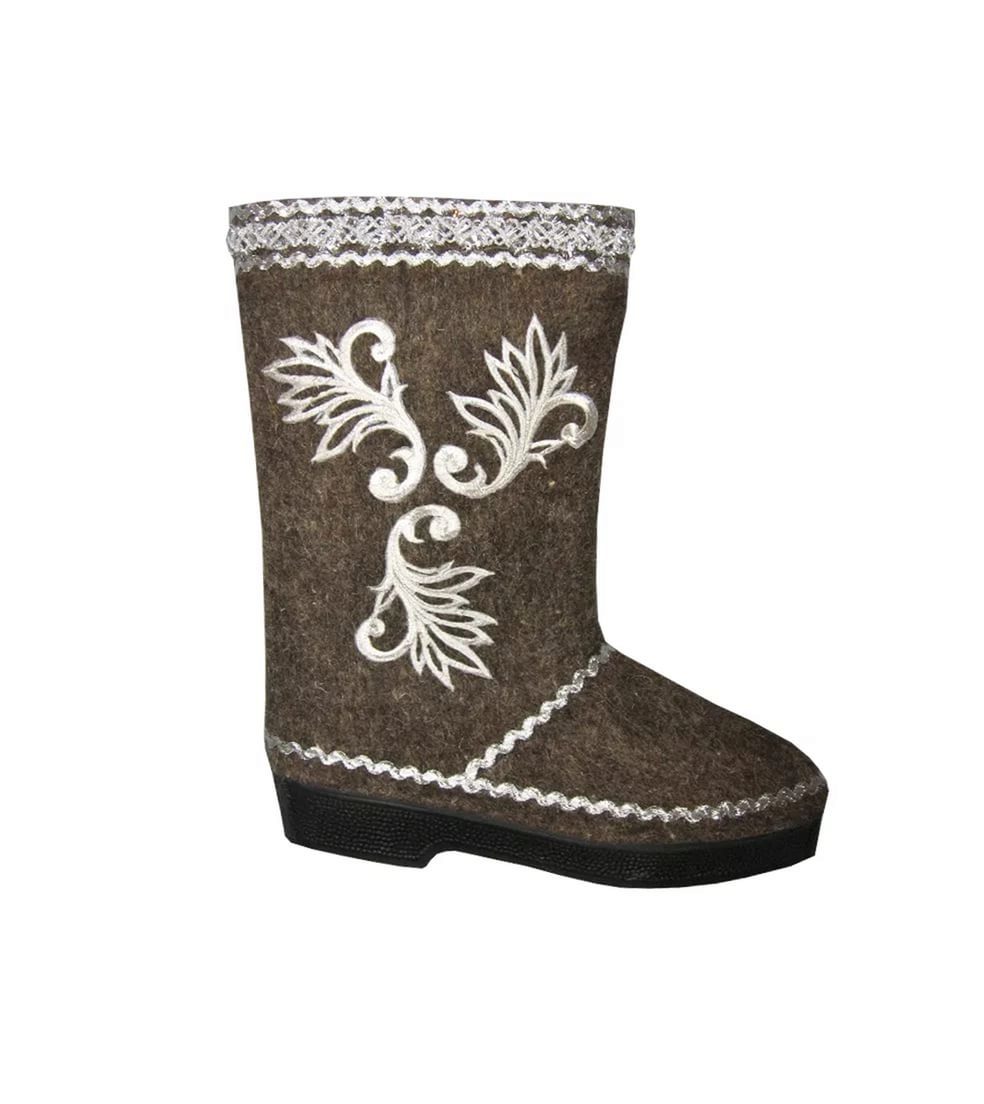 Initially, the boots were made entirely by hand from sheep wool, with the white versions from the Mongolian breed, the gray ones from the Caucasian and Central Asian sheep. However, there were separate samples from the wool of goats and dogs.