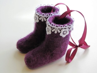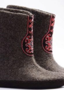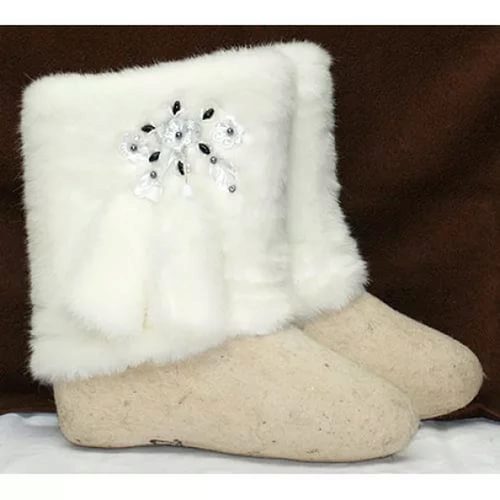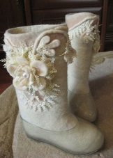 Today, elite boots are made from camel wool, it is much lighter than sheep, but just as warm and strong. Also, designers insert into ordinary felt boots leather, felt, satin, lace fragments. Often this shoe is decorated with fur details, for example, mischievous pompons.