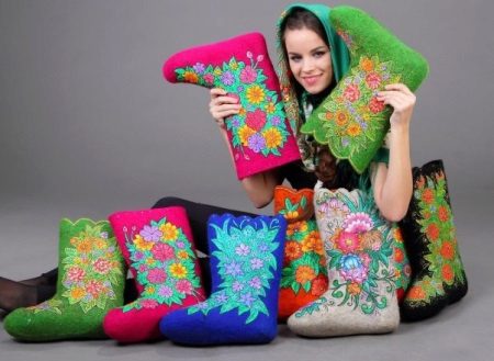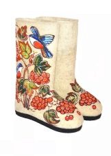 Factory "Kalyaev" sews felt boots with various tops and heels. The range of models, decor and colors are striking in their diversity.