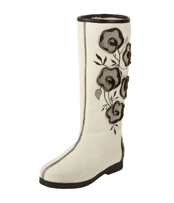 Burqa - men's version of boots: leather bottom of this shoe is combined with a white felt top.