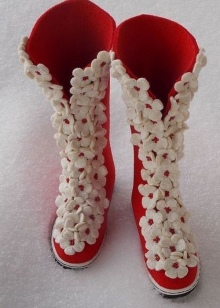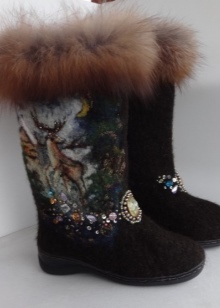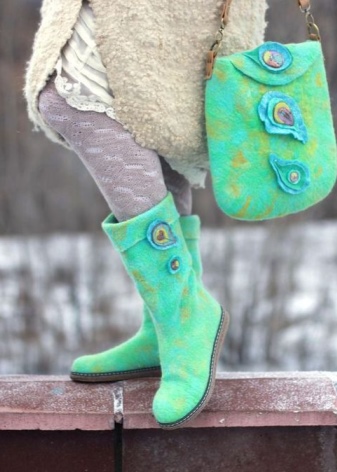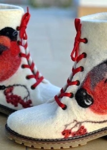 Felt is a natural material, which is obtained as a result of wool spraying. Such raw materials are rightly recognized as durable, dense and breathable. Felt shoes are notable for their high moisture-resistant characteristics. Wear-resistant models of such material will not only warm in cold winters, but also protect from getting wet.