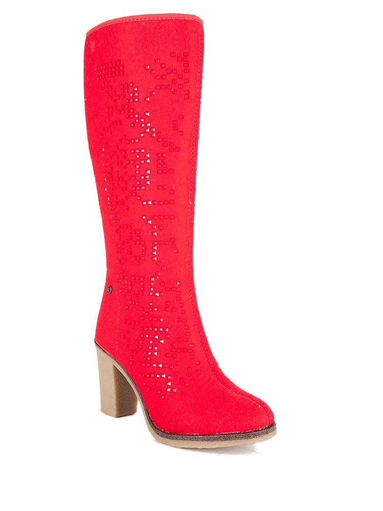 Strict models from the brand Elche can be complemented by leather straps, floral appliqués and embroideries. Warm felt boots have the inside of natural or artificial fur. Very popular products on a small heel and zippers in white, beige and pink.