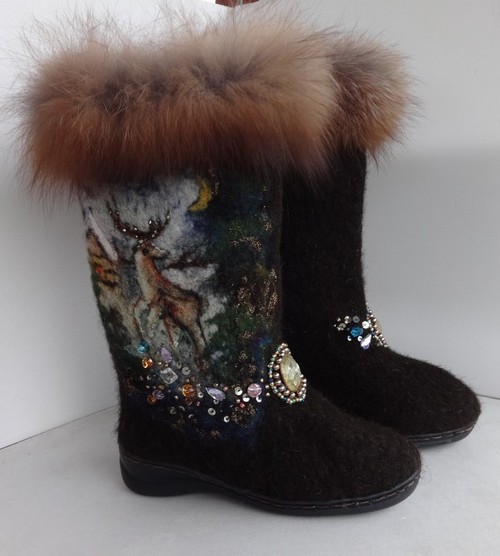 Boots are the ideal solution for the harsh Russian winters and changeable weather. Such original shoes will not allow the legs to freeze and give the lady originality and brightness.
