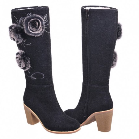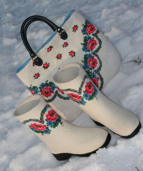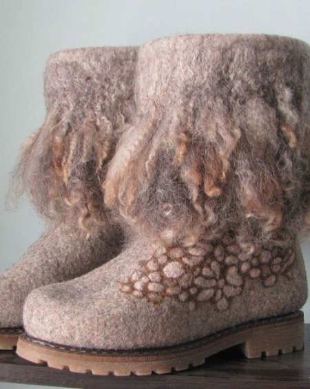Interesting models of natural sheep wool are distinguished by incomparable thermal characteristics and keep their shape. Model products are decorated with flowers, ornaments and chic fur on the tops (by type of unts).