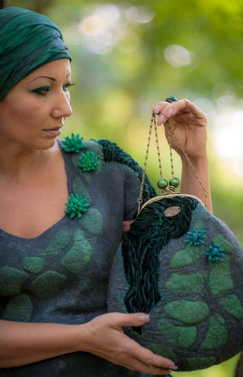 Russian folk embroidery and patterns, flowers, berries and large applications will create a positive and fervent image. Interesting and attractive products can have not only the classic gray color, but also: