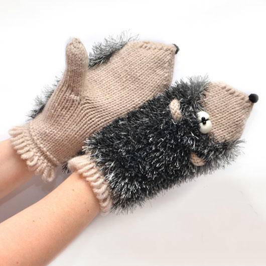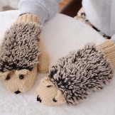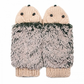 For lovers of creative fashion designers offer different ideas. Incredibly stylish and suitable for him and for her hedgehog gloves from the combined yarn. The base is elastic and the part for fingers is made of smooth yarn, and the central part is made of fluffy “weed” with a melange effect. At the location of the fingers, the mittens are decorated with cheerful little faces of the animals, and the fleece yarn imitates the spines of hedgehogs.
