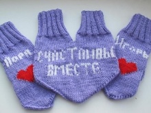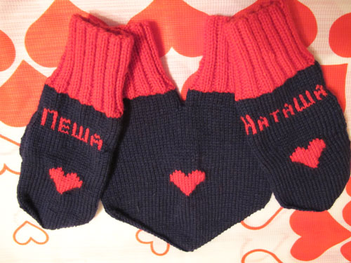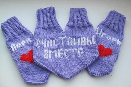 Sometimes the first letters of the name are written on separate mittens, and the heart is placed on the pair. Or the inscription reads: I love you.