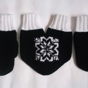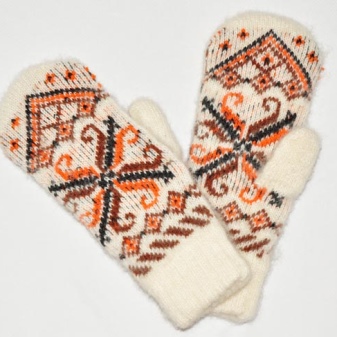 Beautifully look mittens with a combined pattern. It can be different knitting with different finishes. A feature of such products is the overlap of color and pattern of knitting in a common mitten.