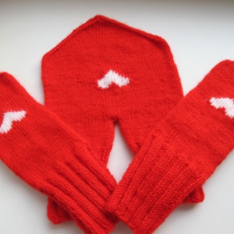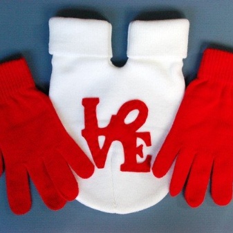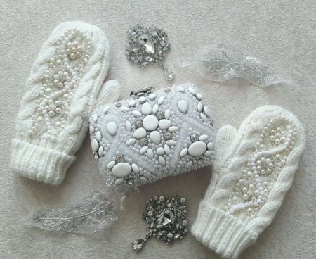 White versions can be decorated with a large red flower located in the center of the pair of mittens. Often, designers decorate mittens with applique, embroidery or the names of lovers. More often on mittens write words about love.