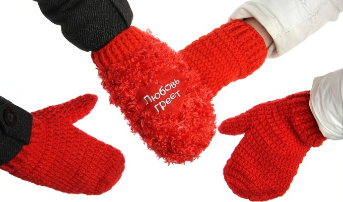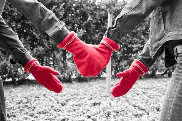 Mittens for lovers are considered a great idea, symbolically uniting loved ones. They like for the originality, bright colors and the opportunity to be closer with your loved one.