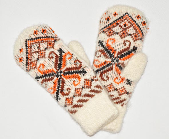 The most popular shades of pair mittens are gray, orange, maroon, smoky-blue, snow-white, dark-blue, beige, blue and black.