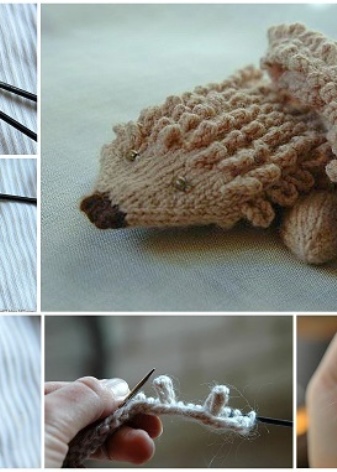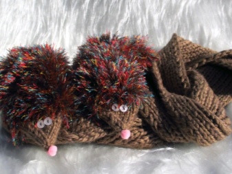 To make the image complete, choose a hat and scarf to match the mittens, or combine accessories with the same knitting, provided that the hedgehog is knitted of wool or other threads besides weed. The kit can be contrasted in color with basic clothing.