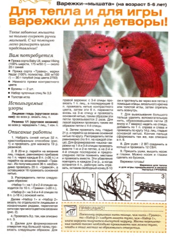 Next, knit 25 rows of the front satin stitch, periodically trying on the product to the hand of the child, until you knit to a level above the little finger. From this point on, reduce the hinges. Crochet the upper part of the mittens.