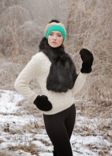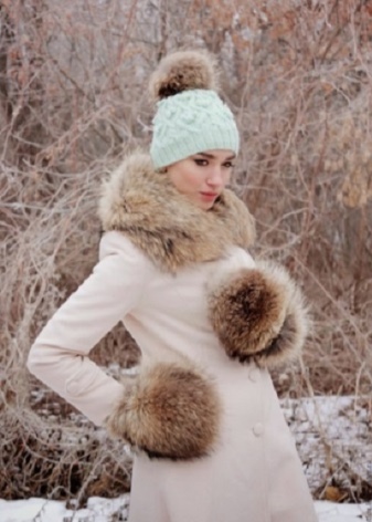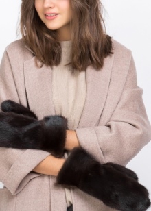 You can wear a classic coat with such mittens. But in this case, it will be correct for some fur accessories to be present. For example, a scarf with fur pompoms.