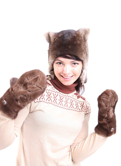 Mink gloves will look great with a hat that will be matched to the tone.