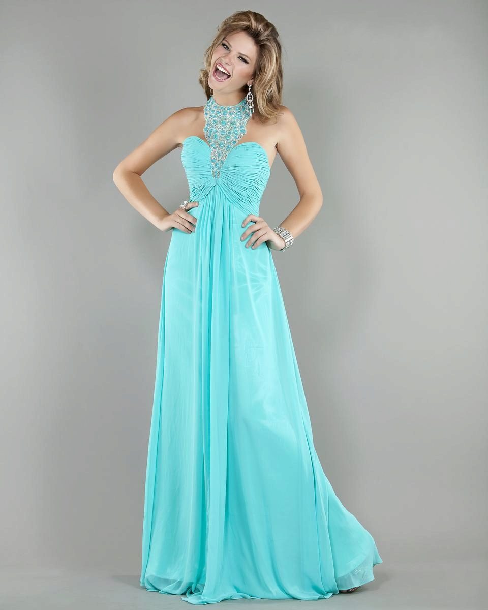 The hit of the season from year to year serves turquoise evening dress. One of the few, this color has no age restrictions, it goes full, thin and slender. Isn't this a sign of color uniqueness?