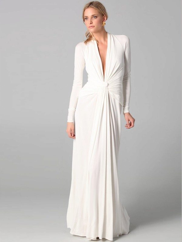 Official receptions require adherence to a strict dress code, but this does not serve as a pretext for refusing elegance. This situation makes actual long sleeved dresses more than ever. Dark, deep shades will be the best choice regarding color, but it will not necessarily be black. Let this color remain for men, and for women there are many other suitable variations.