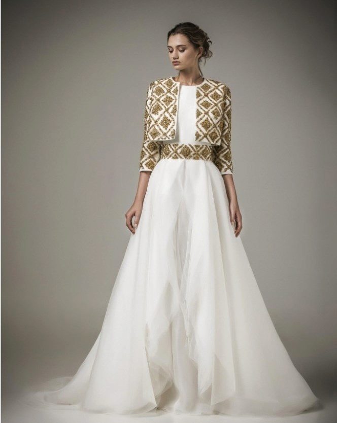 The materials for the manufacture of such a dress are mainly translucent fabric, although no one forbids the use of denser alternatives and narrowed skirts. The latter option, by the way, is suitable for a secular party. Under it fit almost any expensive jewelry.