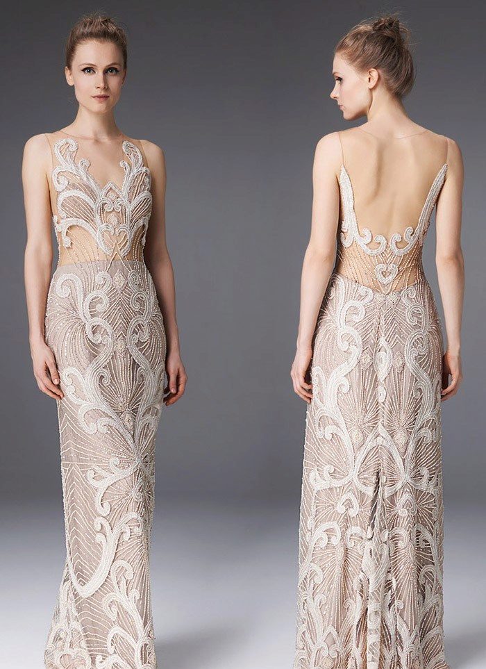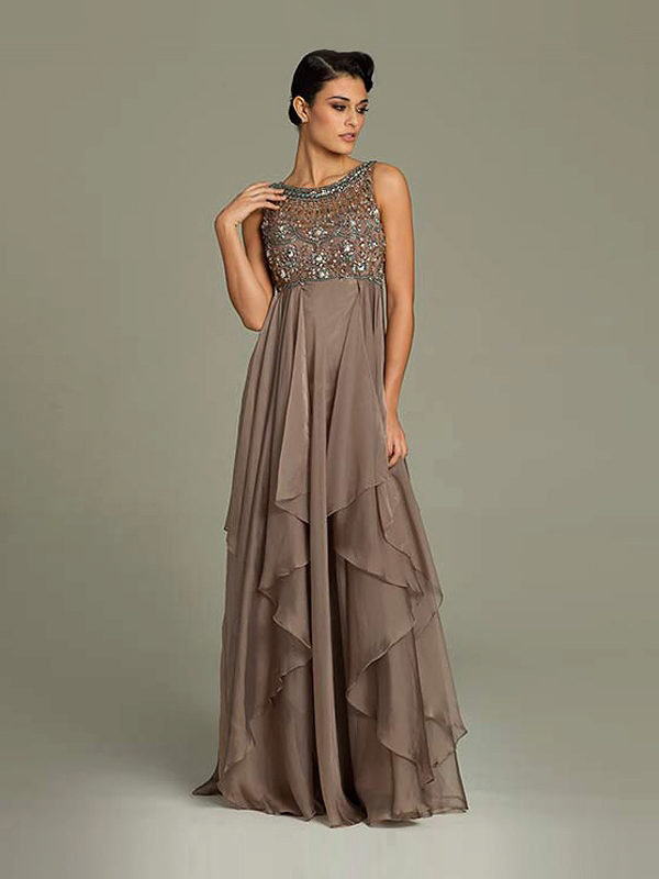 In addition, the current solution is a long evening dress with stones and crystals. Its main advantage lies in the fact that it is suitable for ladies of any age, and may also be appropriate at various events, from weddings (of course, as a guest) to a simple corporate party.