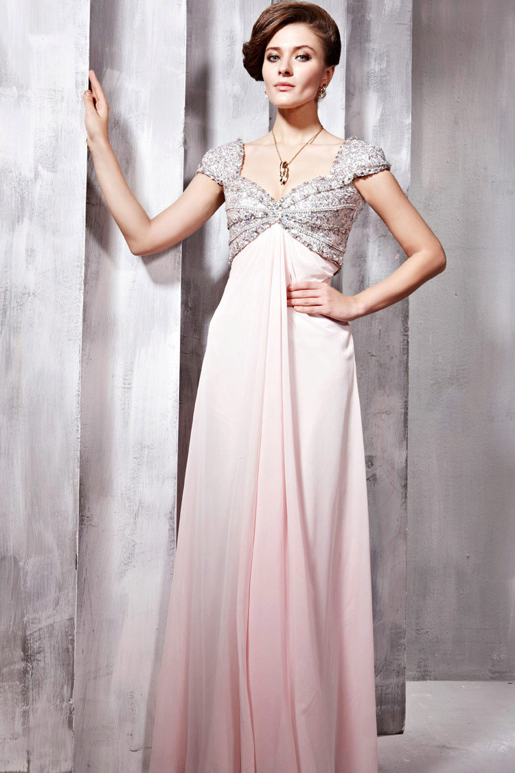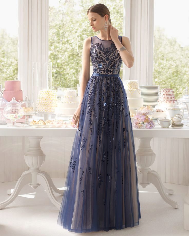 The length, depending on the event, age and shape - from midi to maxi. The bodice is mainly complemented by sleeves, and a square shape, and on the chest a V-shaped neckline. Great for plump beauties who want to hide their hips and give the waist a clearer line.