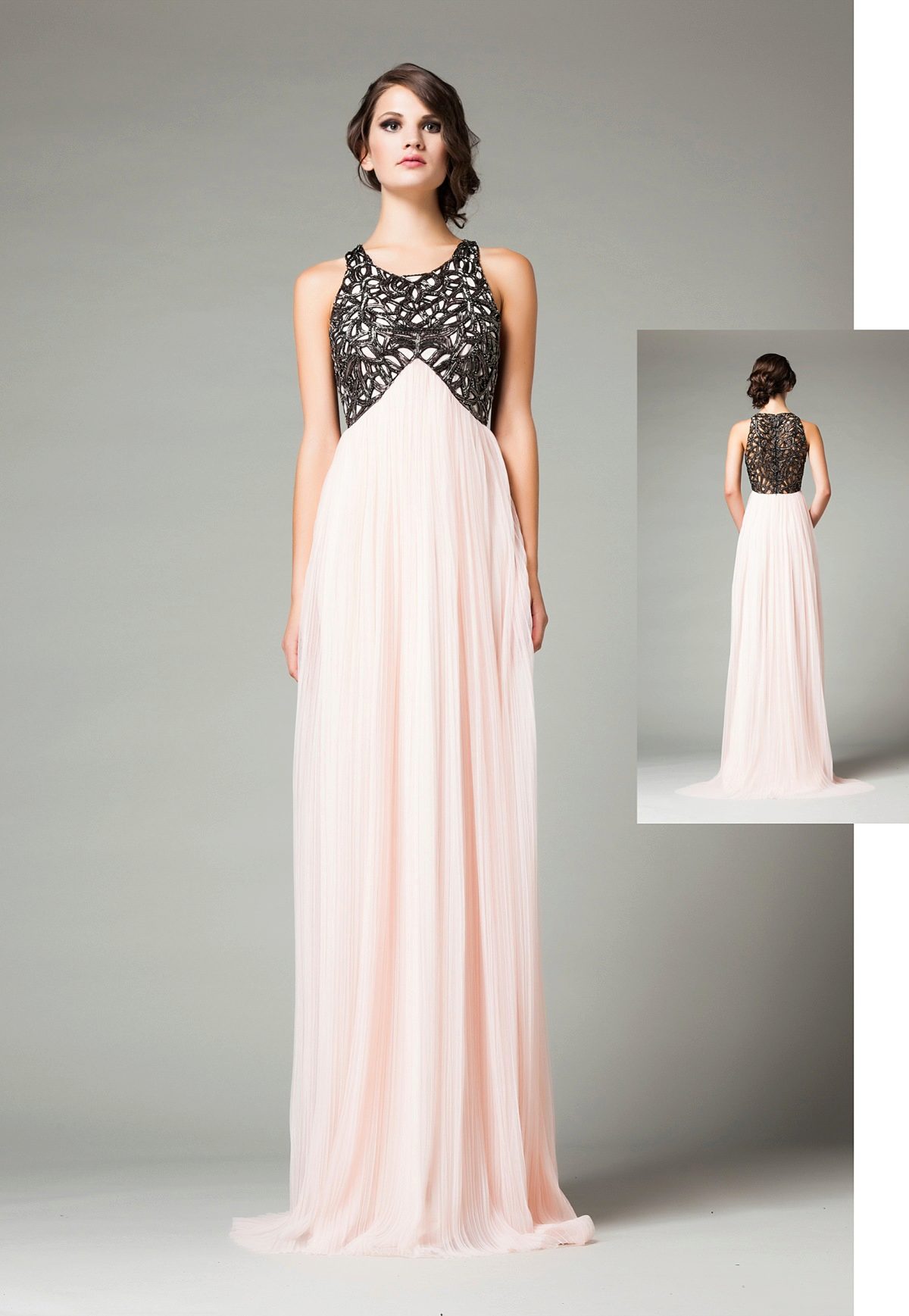 In the evening dress, made in the Greek or Empire style, the bodice is often the main element for decoration. Designers do not stint and try to place rhinestones, beads, sequins as more refined as possible. Even Swarovski stones are used.
