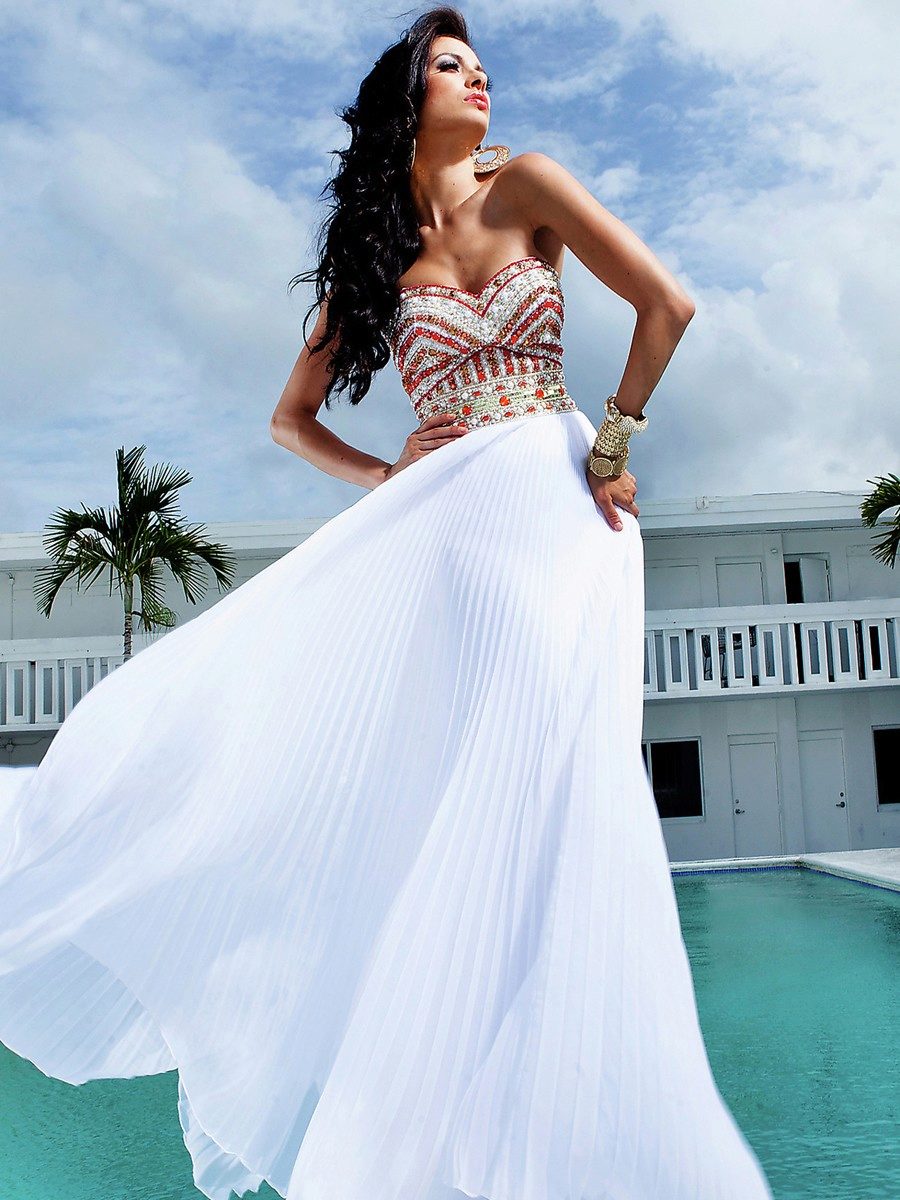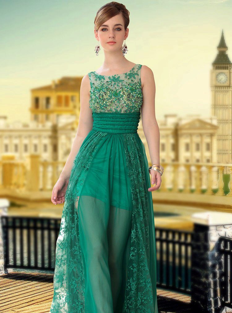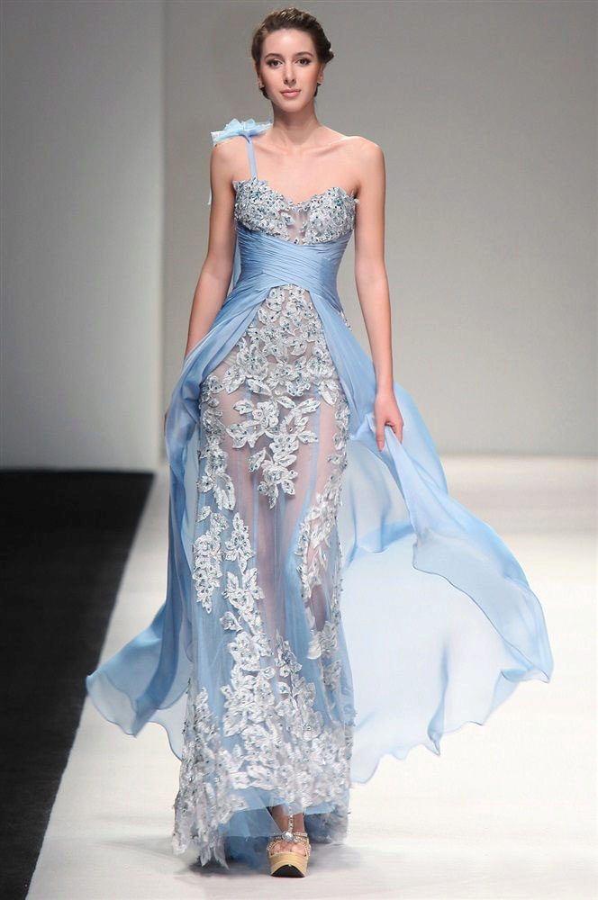 Festive image of chiffon dress can create rhinestones. Attractive look and sequins with complex patterns. The dress itself turns out to be incredibly beautiful, and therefore it is not at all necessary to use some kind of sophisticated cut.Everything can turn out to be more than simple - long skirts with a slanting cut, a compact and fitted bodice. The best decoration is your natural beauty.