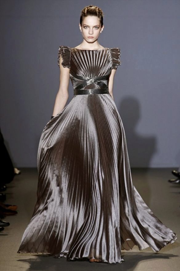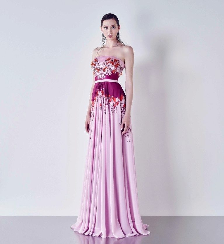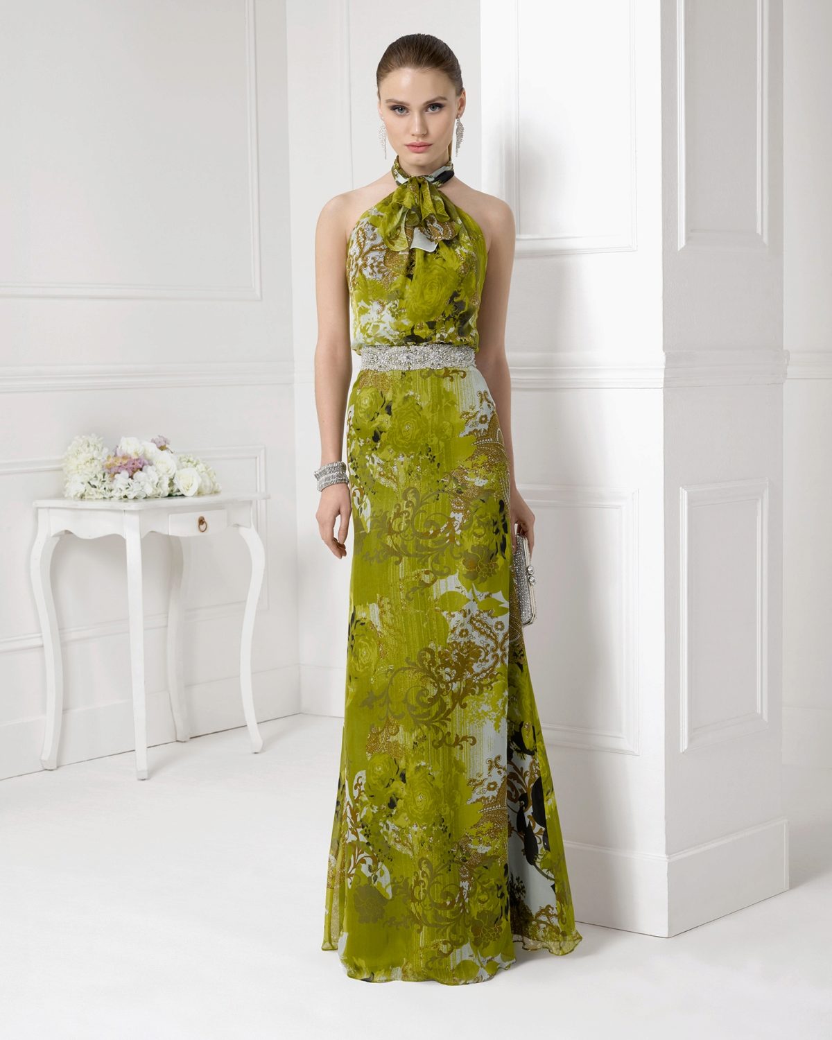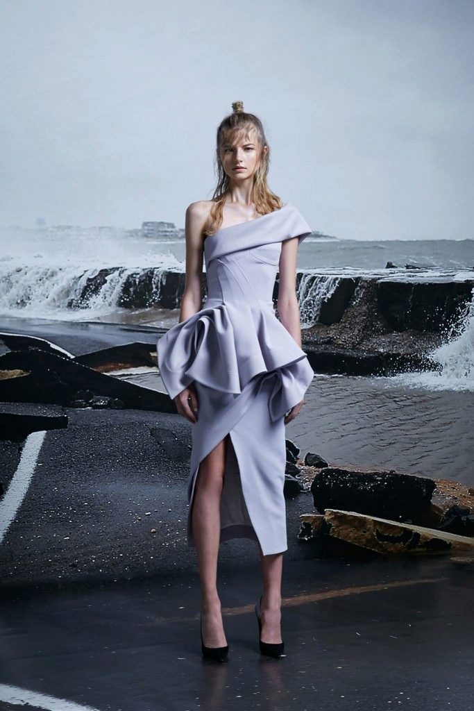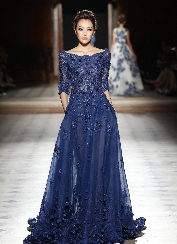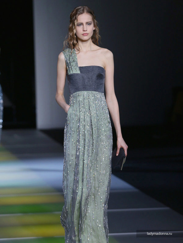 Ideal for models with an American armhole or tailored for oblique, attracting attention to the shoulders or chest. Draperies, drawings, puffs, ruffles are important elements that create the necessary volume. A good addition would be a bolero or cape.