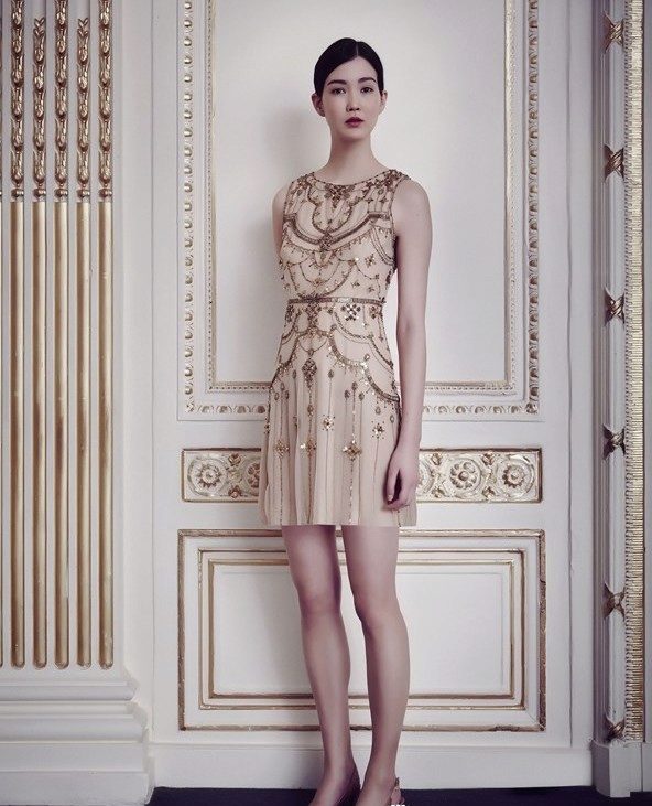 When narrow shoulders and hips, first of all you need to highlight the waist. All decorative elements (beads, sequins, applications) are yours. Ideally, you need to create a volume at the top and at the bottom.