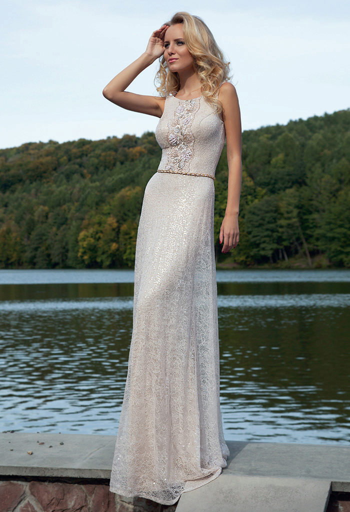 Tribute to traditions embodied in dresses with A-silhouette. A well-fitting top and a smoothly expanding lower part - all this balances the figure well, brings notes of mystery and elegance. Quite often, for the upper part, Oksana chooses lace that blends well with chiffon in several layers. Chains or satin ribbons are often present at the waist.