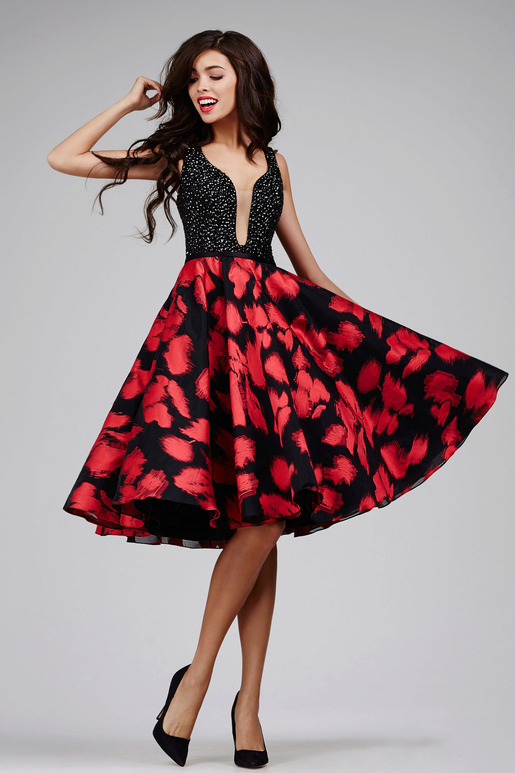 The presence of feminine hips can be beautifully beaten by choosing a fitted dress in red.