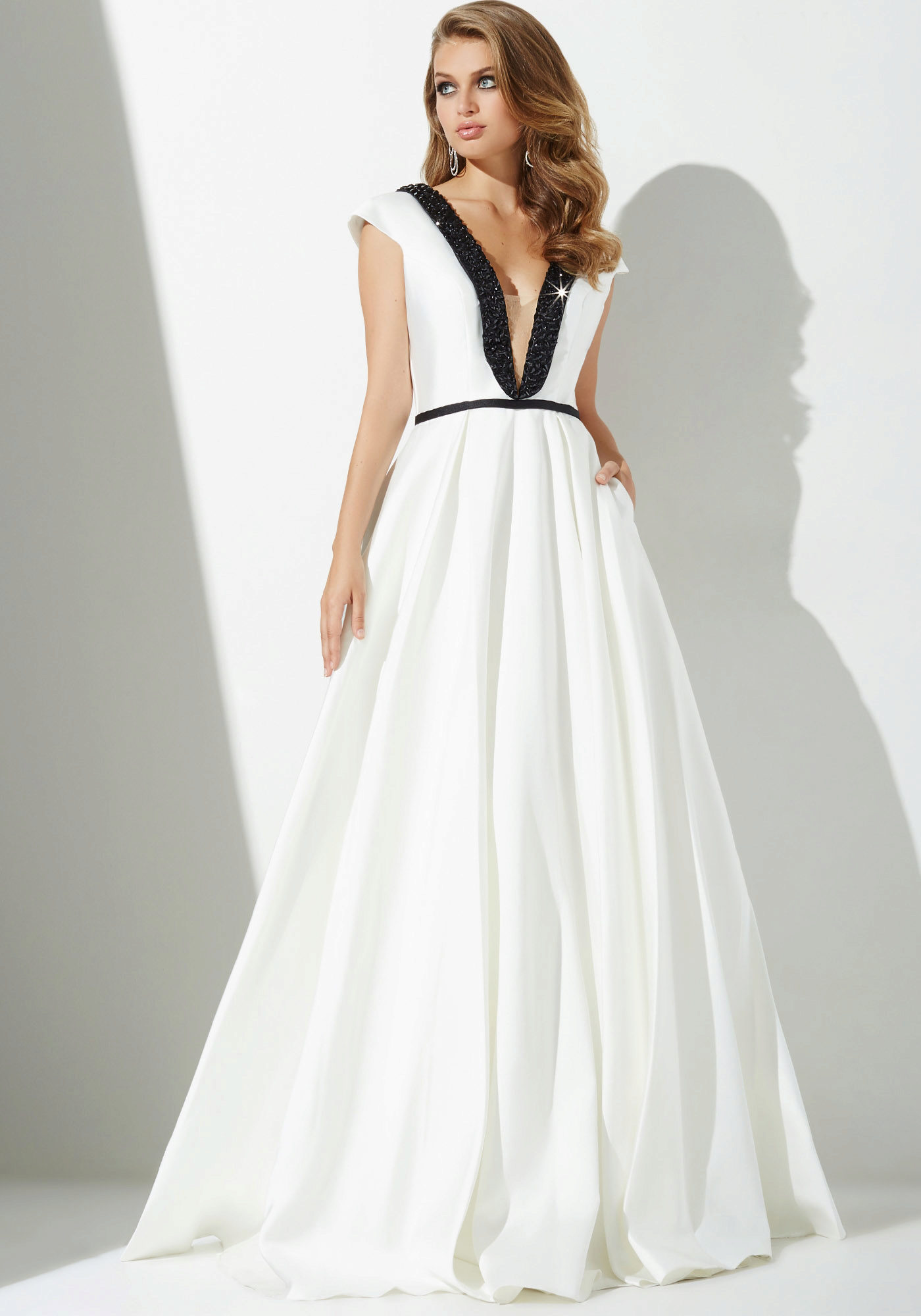 With a deep neckline