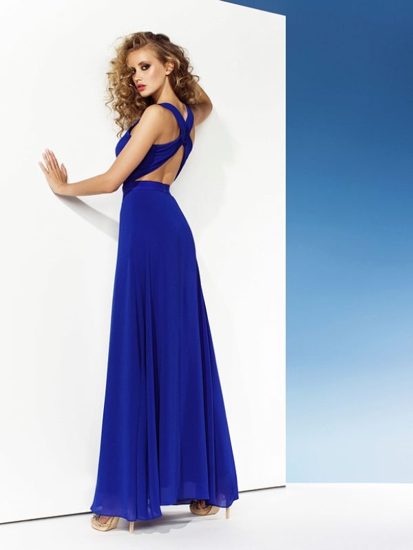 Choosing a different depth and shape of the cut, you can achieve a different effect. For modest women, it may be enough to bare only the shoulders, and more courageous women will not have enough open waist and they will want to bare another hollow at the very bottom of the back. The dress in addition to the cutout may be present and other details: drapery, interlacing or crossing the strap.